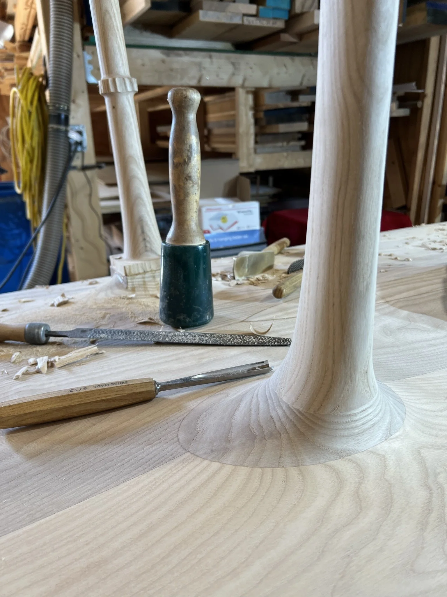 Brownsmith Studios was commissioned by The Elm restaurant to design and build a café table for part of the dining area that was being underutilized. Inspired by Art Nouveau furniture, it was designed as a single cohesive piece that seamlessly flows from top to legs to stretcher. The curved stretcher adds a dynamic visual element while also working to provide lateral stability.